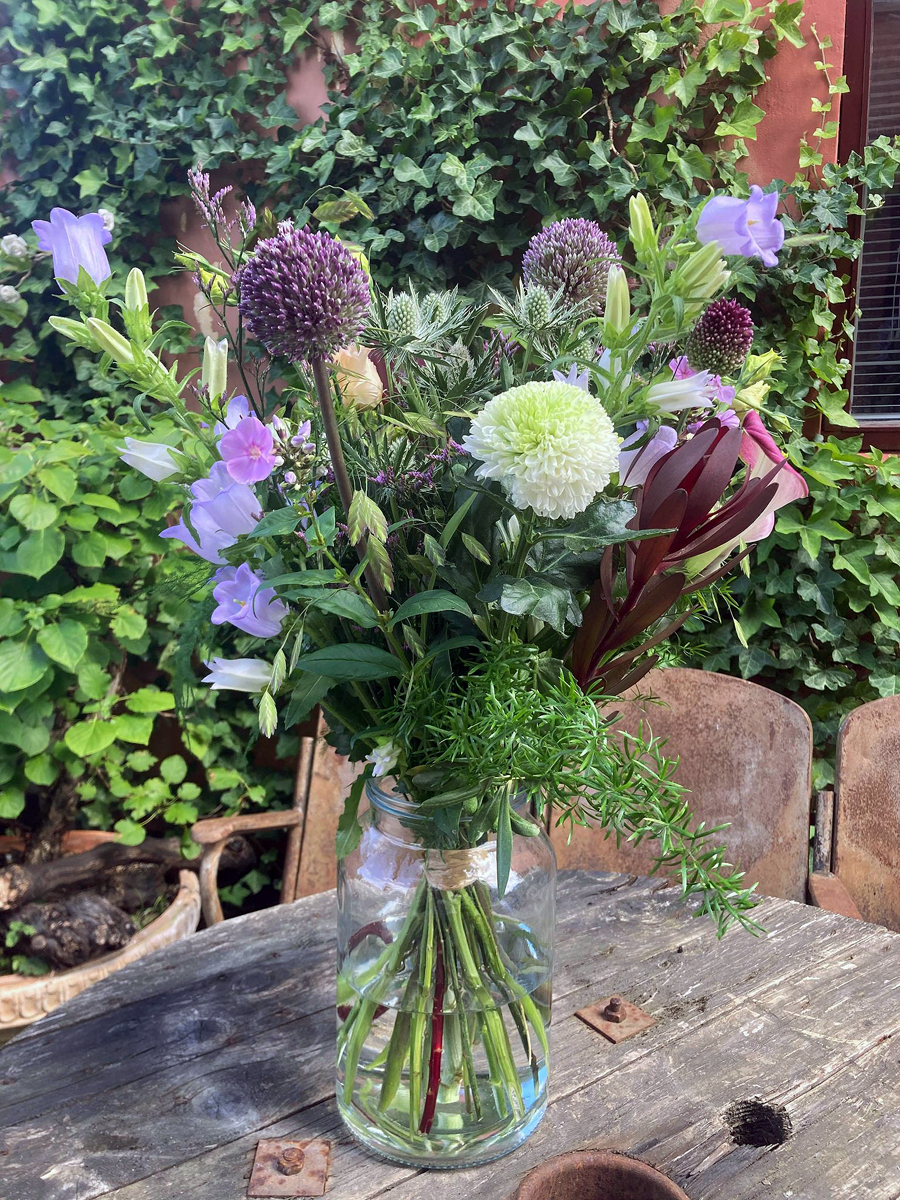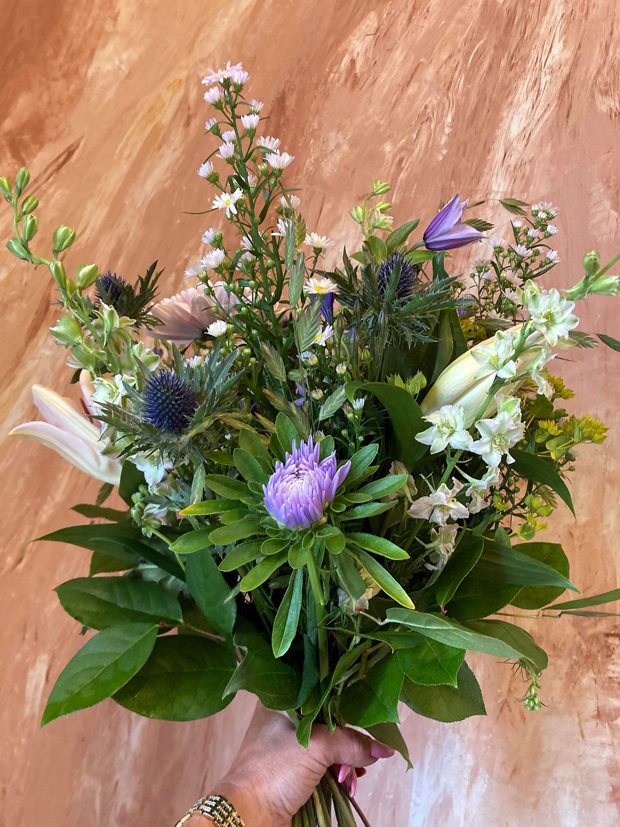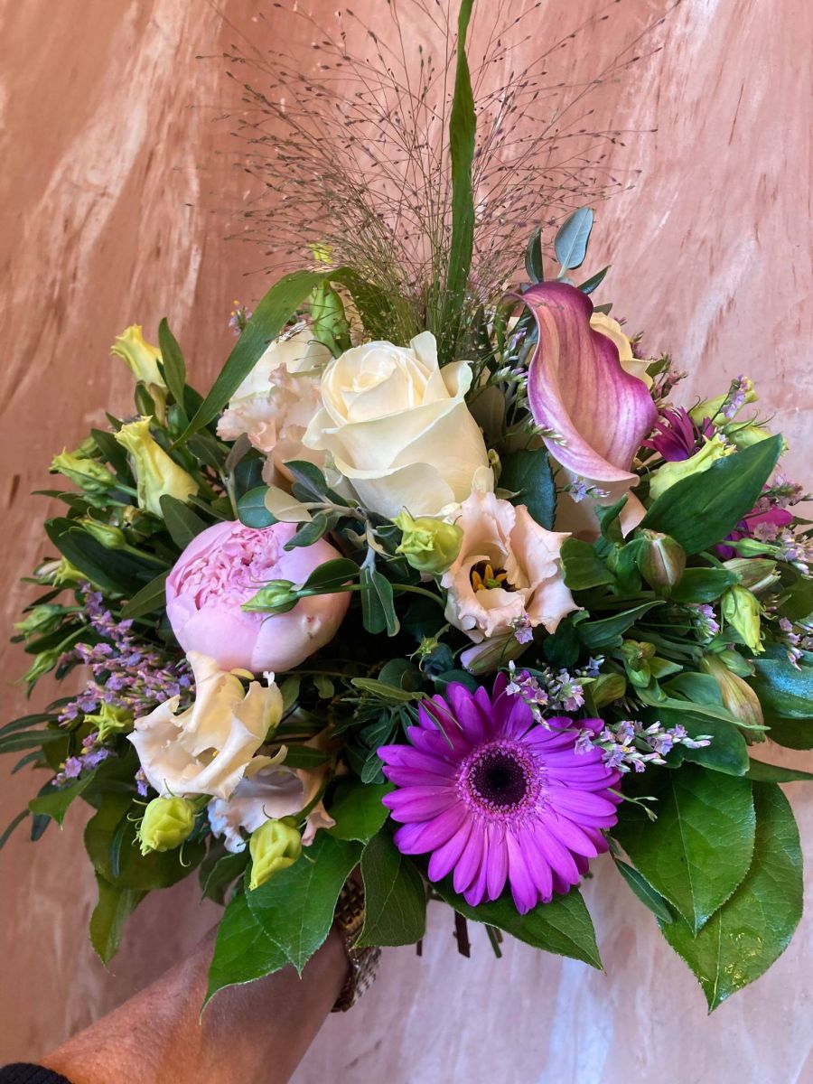 Vi sammensætter vores buketter med sæsonens smukkeste blomster og et kreativt blik for farver, former og detaljer. Det skal mærkes, at buketten er lavet specielt til netop dén, der får den. Om det er en vild og farverig blomsterfest eller en mere afdæmpet og elegant buket, skaber vi altid med hjertet – og med tanke på, at blomster kan sige det, ord ikke altid kan.